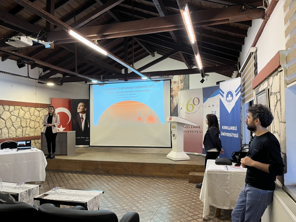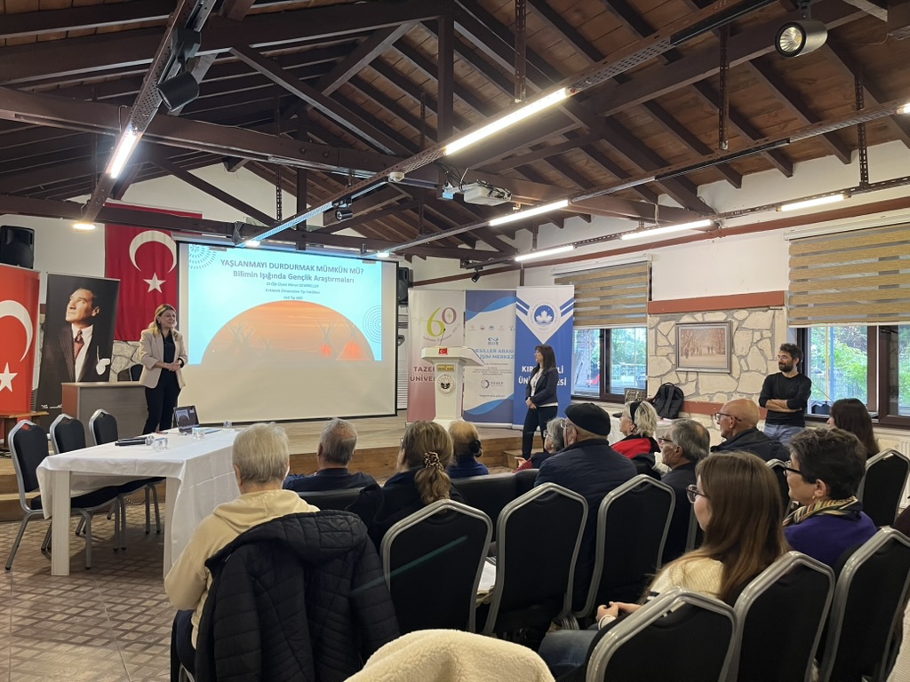 Dr. Öğr. Üyesi Merve Demireller’in “Yaşlanmayı Durdurmak Mümkün mü? Bilimin Işığında Gençlik Araştırmaları” oturumunda yaşlanmanın biyolojik mekanizmaları, hücresel yenilenme ve genetik faktörlerin etkisi bilimsel bir çerçevede aktarıldı. Genetik faktörlerin yanı sıra beslenme, egzersiz, stres yönetimi ve sosyal bağların sağlıklı yaşlanmadaki önemine dikkat çekildi.