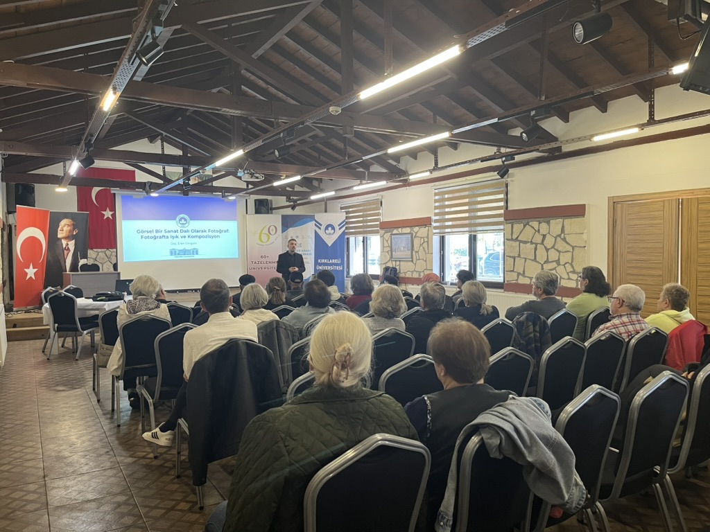 Doç. Dr. Eren Görgülü’nün “Görsel Bir Sanat Dalı Olarak Fotoğraf: Fotoğrafta Kompozisyon ve Işık” oturumunda, fotoğraf çekiminde kompozisyonun önemi ve ışığın doğru kullanımı gibi çeşitli konular üzerinde duruldu. Katılımcılar, edindikleri bilgileri açık havada yapılan uygulama etkinliğinde deneyimleme fırsatı buldu.