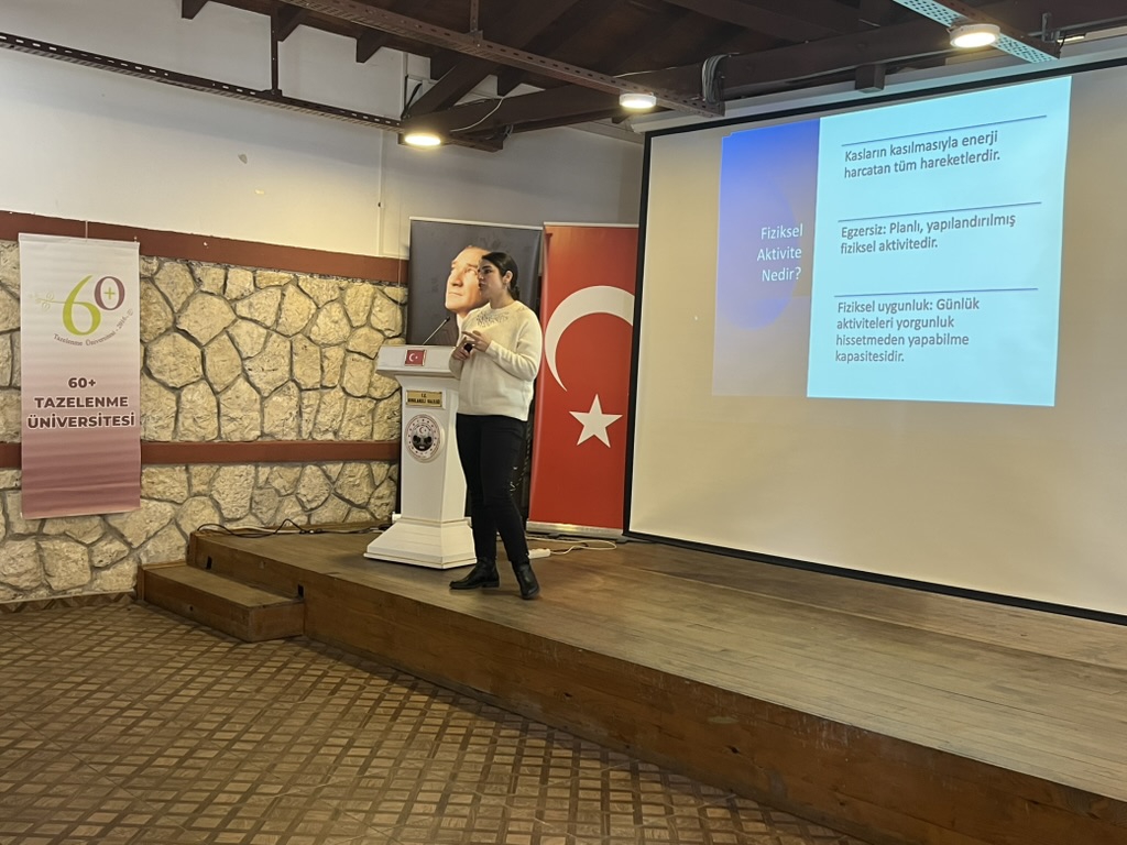 Dr. Öğr. Üyesi Neslişah Gün’ün “Egzersiz Türleri: Kas Güçlendirme, Denge, Esneklik” oturumunda katılımcılar, günlük hayatta kolayca uygulanabilecek hareketlerle beden güçlerini artırmanın yollarını öğrendi.