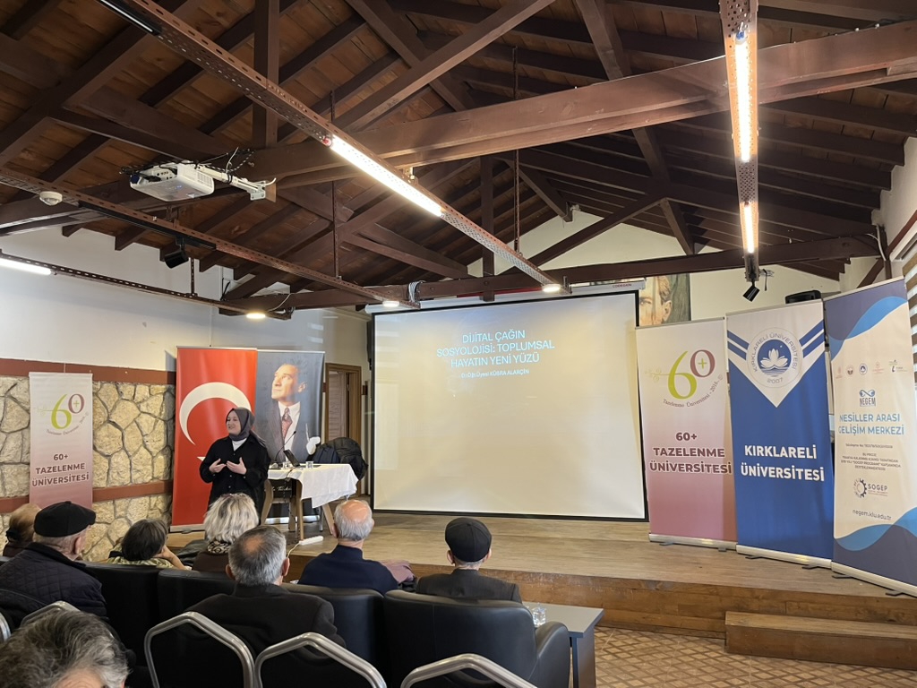 Dr. Öğr. Üyesi Kübra Alarçin’in “Dijital Çağın Sosyolojisi: Toplumsal Hayatın Yeni Yüzü” oturumunda, dijital çağın zaman algısı, sosyal ilişkiler ve bireysel kimlik üzerindeki etkileri sosyolojik bir bakış açısıyla değerlendirildi. Dijitalleşmenin gündelik hayatı nasıl dönüştürdüğü örneklerle ele alındı.