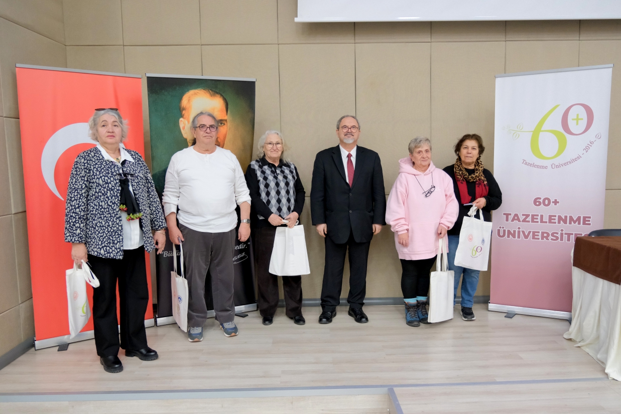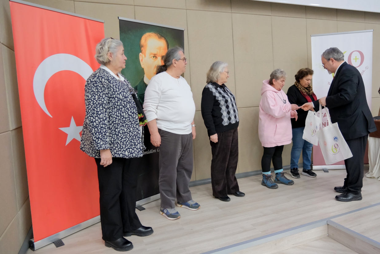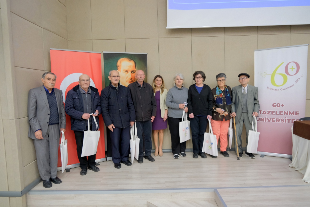 Konuşmanın ardından 60+ Tazelenme Üniversitesi öğrencilerine kimlik kartları ve 60+ Tazelenme Üniversitesi çantaları takdim edildi. Öğrencilerimizin heyecan ve mutluluğu törene anlamlı anlar kattı.