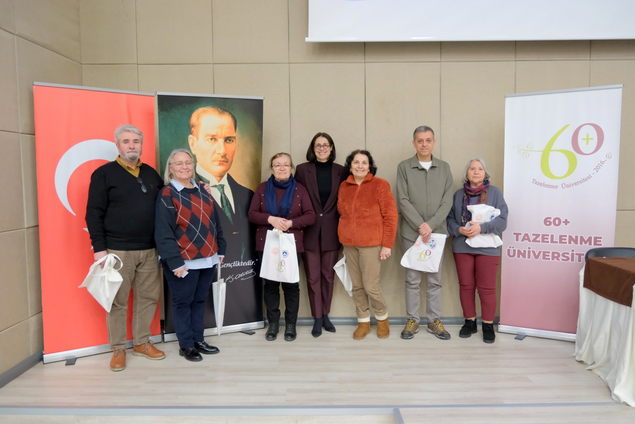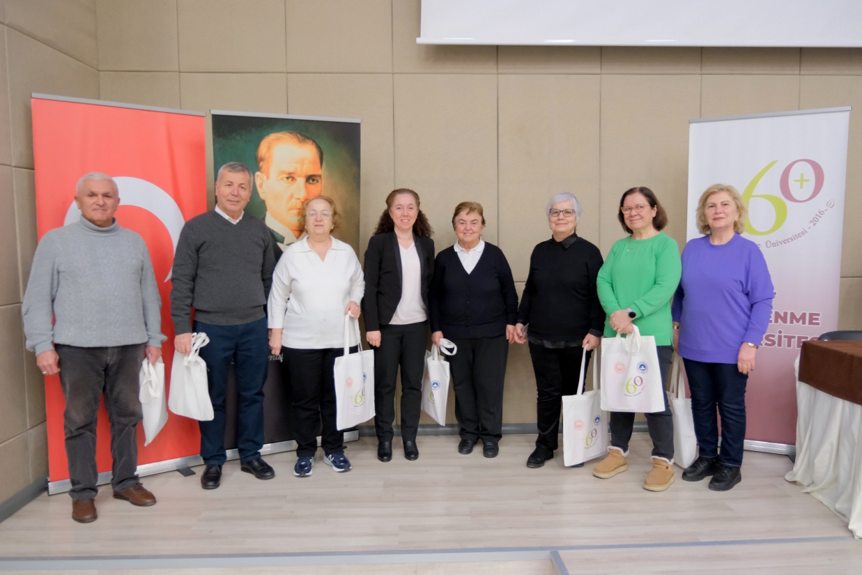 Program, toplu fotoğraf çekimi ile sona erdi. 60+ Tazelenme Üniversitesi öğrencilerimize sağlıklı, verimli ve başarılarla dolu bir eğitim yolculuğu diliyoruz.